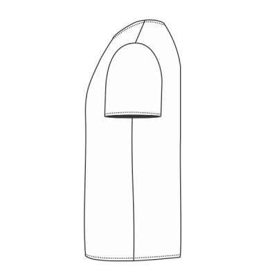 Neck ribbing, side seamed, shoulder to shoulder tape, double needle hems.